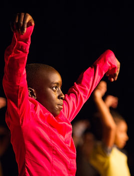 Finally, everyone comes back together for the festival. Usually the festival consists of between five and eight schools. We use either a theatre, or a secondary school with good theatre facilities for the performance. In many cases this means the children get to participate in an event at the secondary school they will be moving on to. Each class gets a technical rehearsal for lighting and sound. The scenes are linked together by a professional actor – and everyone finally gets to enjoy the work! Before the show we display some of the written/ art work that has been created.